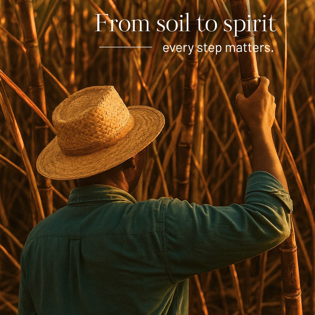 We work with environmentally conscious distilleries, bottle in lightweight glass (33% less), use recycled cane paper labels, and partner only with producers that share our commitment to reducing waste and emissions.
